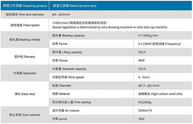 鋼筋拋丸機(jī)是根據(jù)用戶要求而設(shè)計(jì)制作的一種新型專用設(shè)備,是一種專門用于清理鋼筋、線材的拋丸清理設(shè)備。它能對(duì)原始狀態(tài)的鋼材表面施以強(qiáng)力拋丸,除掉其上的銹層、焊渣及氧化皮,使之獲得均勻一致的金屬光澤,以提高鋼材的涂飾質(zhì)量與防腐效果。