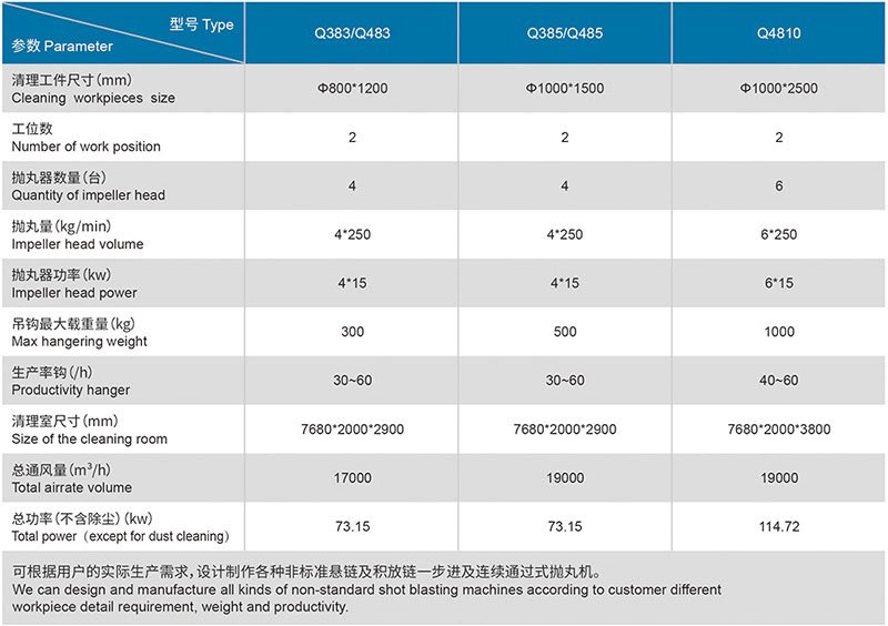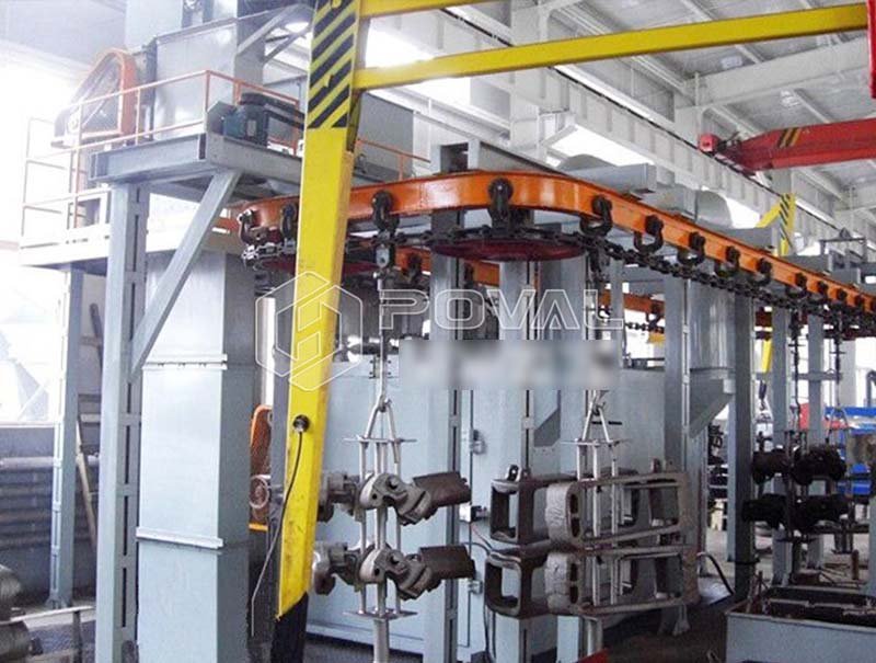 懸鏈?zhǔn)綊佂铏C(jī)是一種雙行程懸鏈連續(xù)式拋丸清理設(shè)備,它具有工件靜態(tài)裝卸、自動快速輸送與定位,工件旋轉(zhuǎn)拋丸清理。整機(jī)采用常規(guī)電器控制,工件的輸送軌道無級變速。適合于大批量、鑄鋼、鑄鐵、及焊接件的全方位拋丸清理,用于各種形式的可吊掛式工件。通過拋丸清理,不但可以去除工件表面的銹蝕,清理掉結(jié)構(gòu)件上的焊渣,還可以消除工件的焊接應(yīng)力,提高工件的抗疲勞強(qiáng)度,增加工件噴漆時的漆膜附著力,并最終達(dá)到提高整個工件表面及內(nèi)在質(zhì)量的目的。廣泛用于冶金、石油、化工、機(jī)械等行業(yè)。